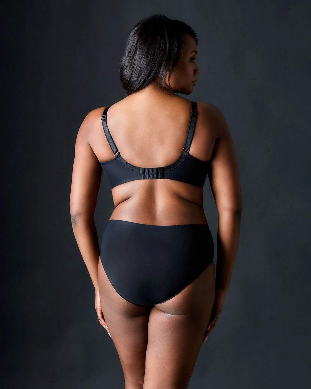 - Unlined underwire sheer mesh cups with flat vertical seams for support