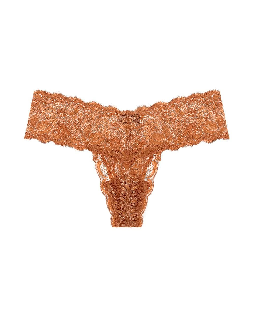 This lacy, low-rise thong features a soft, wide stretch waistband, designed to prevent digging to keep you comfortable all day long. Sized especially for medium to extra large sizes, with minimal rear coverage. Cosabella’s best-selling, Italian Never Say Never is loved for its beautiful floral pattern and innovative lace – now available in shimmery metallic!