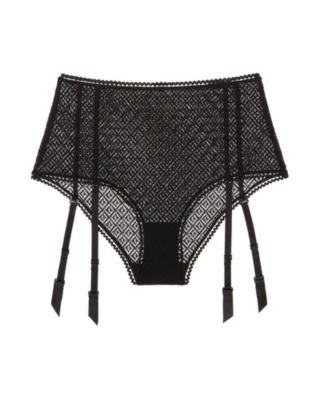 Made with recycled yarn and manufactured with solar power, the Betty collection is the epitome of sustainable lingerie. This high-waisted brief is made with intricately patterned lace with picot trim edges for a flirty detail. The rear has moderate exposure with removable garter straps that are attached to the leg opening for the option of tights.