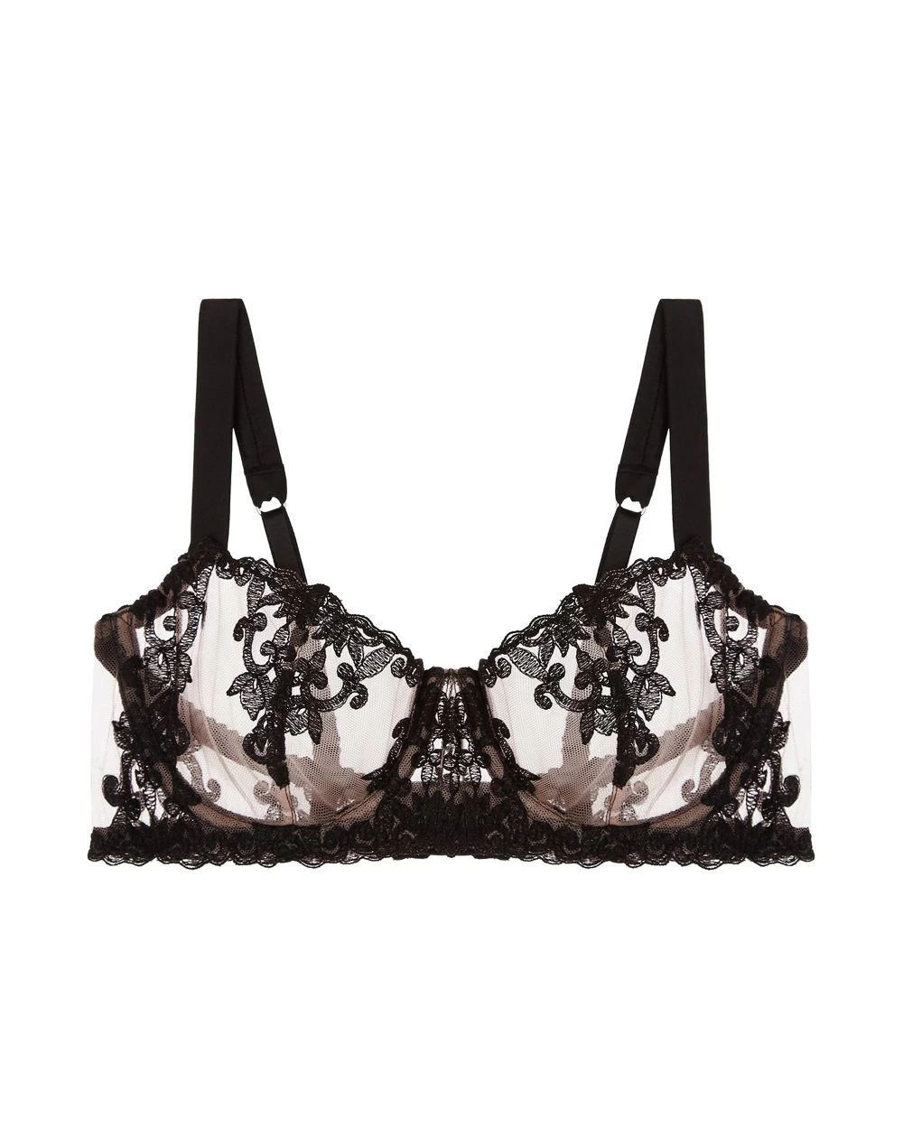 An intoxicating contrast of bespoke embroidery, decadent silk, and invisible Italian tulle create a mesmerizing balconette style bra that has us longing for night to fall.