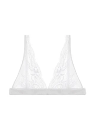The definition of everyday luxury, the Signature Collection Boudoir Bra is a feminine style that you will want to wear everyday. With its white sheer mesh and lace embroidery, this soft triangle cup bra is comfortable against the skin and offers support with the elastic under band and adjustable straps.