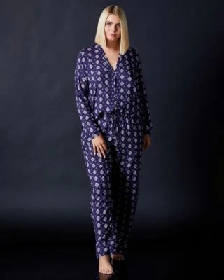 Take your loungewear to the next level with this long sleeve shirt with intricate all-over print. This pullover style made of ultra-soft fabric will keep you comfortable as you sleep, set with a button front closure detail.