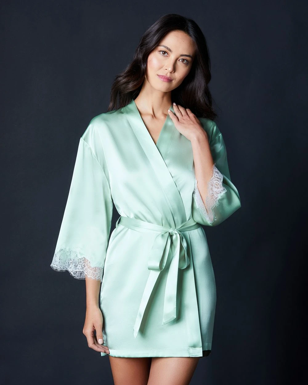 Crafted from the most sumptuous silk we could find (so that it just kisses the body) and trimmed (elegantly) with delicate lace that has the loveliest, teensiest eyelashes ever, this one is ready for its closeup.