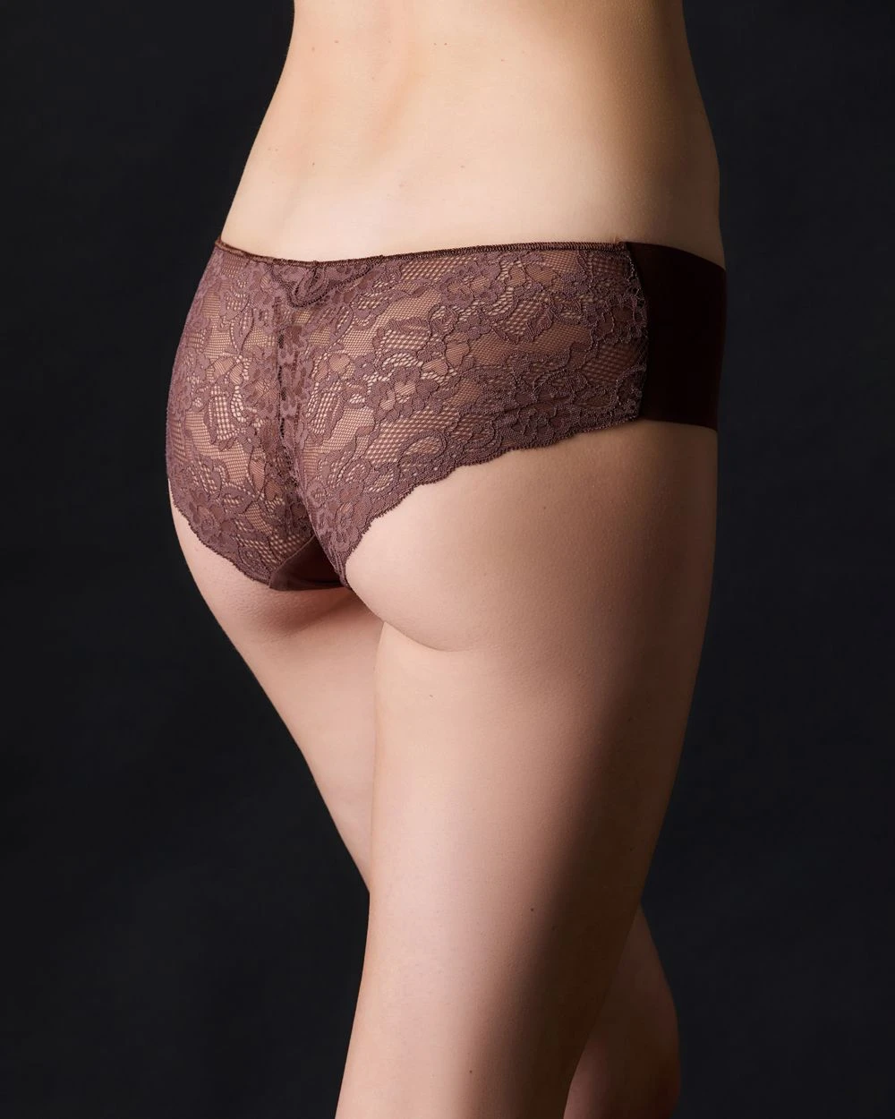 With its impeccable fit, precision cut raw edge, glorious smooth-seamed sides, stunning lace, and lovely sheer back, this seamless hipster is perfect by design. Our design.