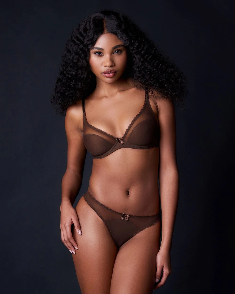 Pretty and practical, the Journelle Victoire Thong is great to elevate your everyday bottoms. Delicate sheer mesh meets the cotton paneling that will provide all-day comfort. The edges are lined with intricate picot trim and decorated with a front bow detail that will lay against your hips to meet the thong back for all-day wear.