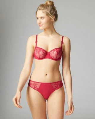 Delicate and romantic, this classic demi shape has single seam shaping in the cup and slender double straps. Each cup is crafted from sheer mesh and is accented with peek-a-boo rosettes and abstract stitching with impeccable detail. Complete with adjustable straps and a hook and eye closure for a customizable fit.