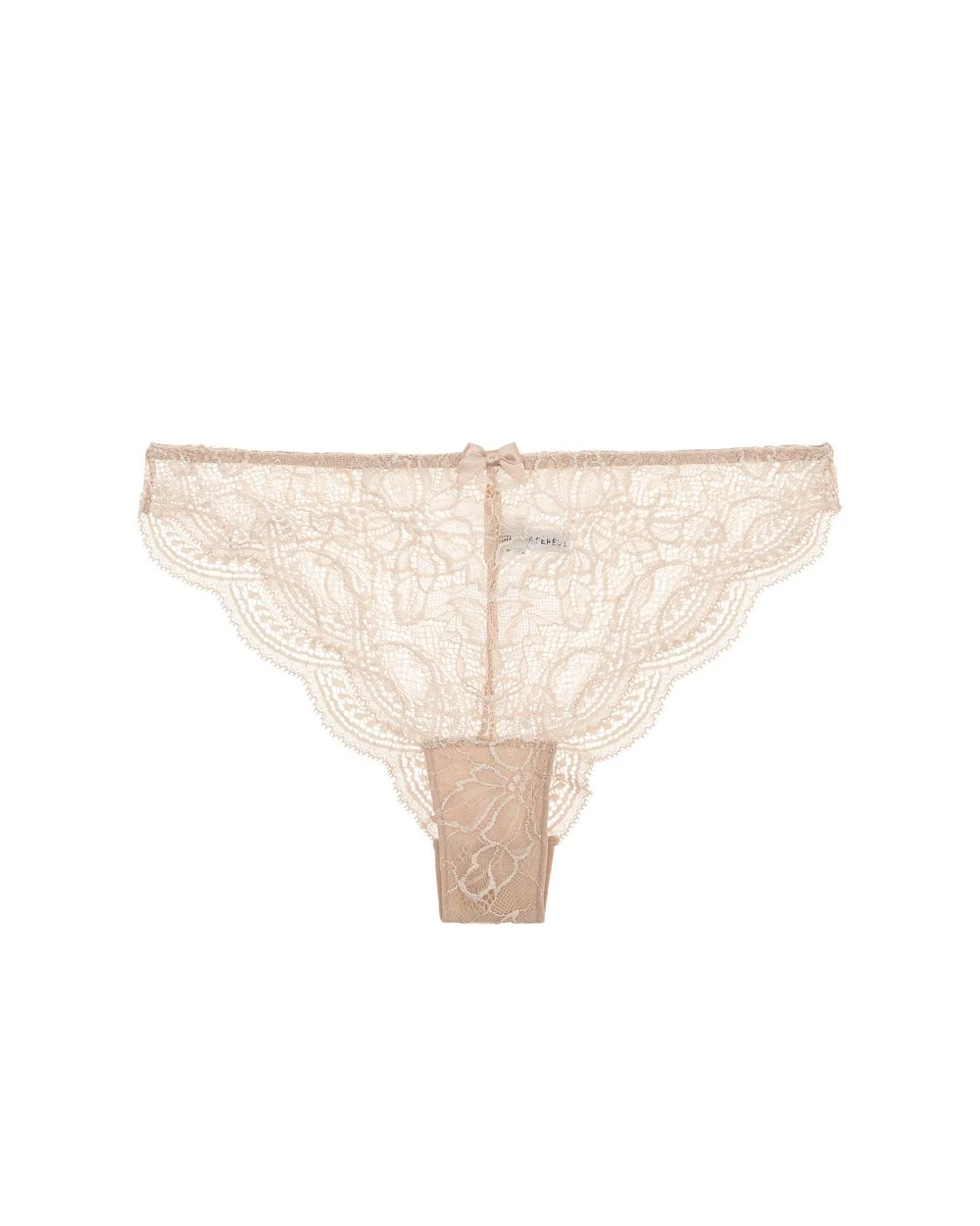 Designed in France with sheer Chantilly lace, this low-rise thong is the epitome of everyday luxury. Crafted with all-over floral lace and a delicate scalloped edge, this thong silhouette has a cheeky bum with moderate coverage for elegant, everyday wear. Paired with a high leg opening and a front bow for added detail.
