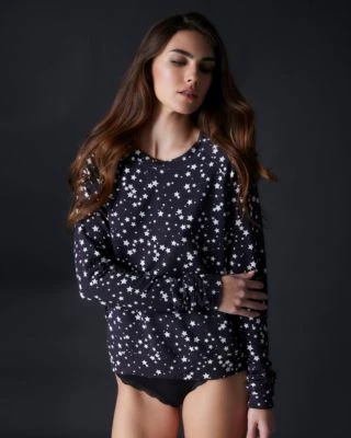 The perfect layering piece for the colder months, the Black and White Star Sweatshirt will keep you warm and cozy. Made with sustainably sourced micro-modal that is twice as soft as cotton. Flaunt your stylish side with the bold constellation print and relaxed fit.